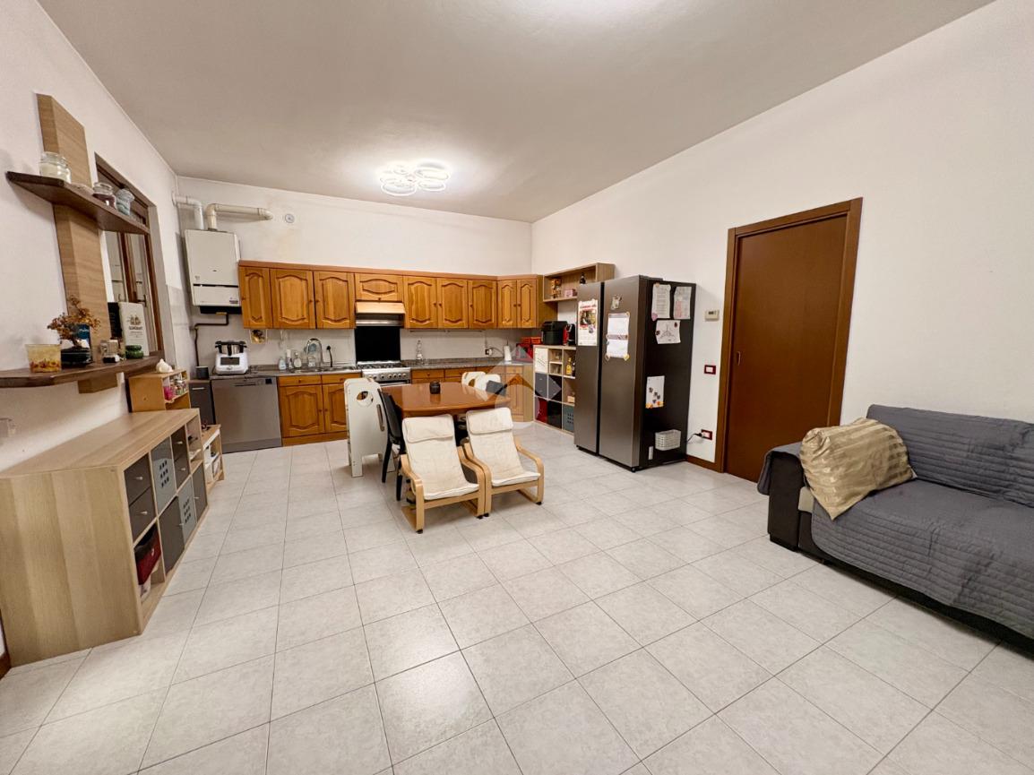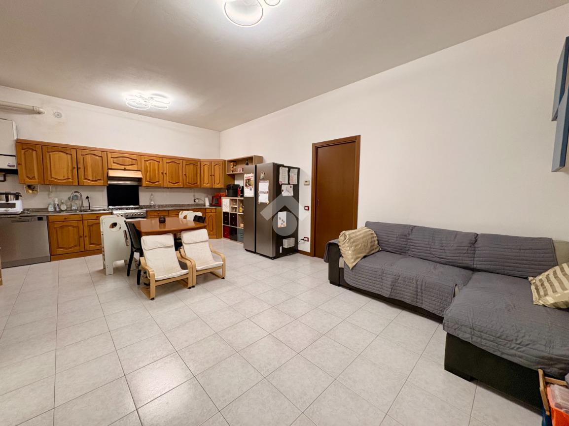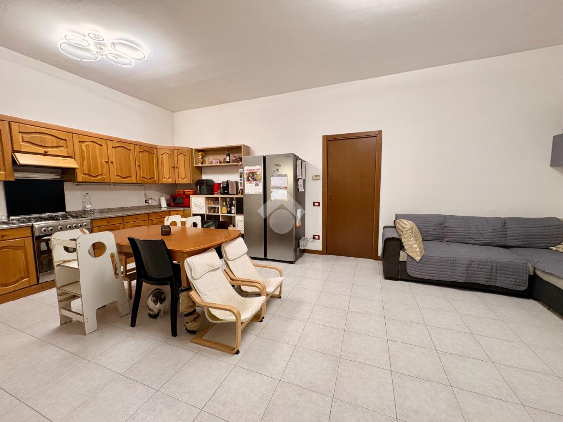 Il soggiorno con cucina a vista, luminoso e spazioso, permette l'accesso ad un terrazzo che offre un'area esterna privata per momenti di relax.